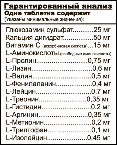 WOLMAR WINSOME® PRO BIO L-COLLAGEN глюкозамин сульфат, дигидрат кальция, аскорбиновая кислота, белково-сывороточный концентрат, изолят белково-сывороточный концентрата, ферментативные экстракты B. Subtilis (CH201/DSM5750), B.Licheniformis (CP200/DSM5749), МКЦ, ЗМЦ, стеарат кальция, ароматизатор.